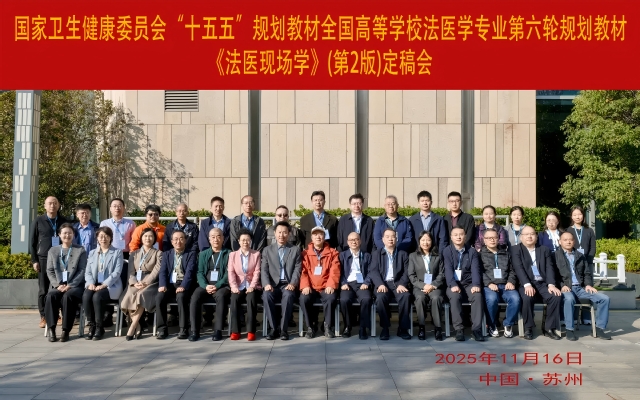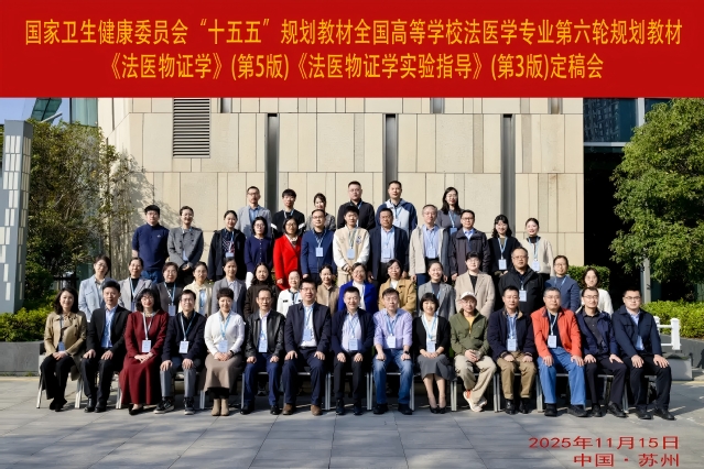 2025年11月15日-16日,国家卫生健康委员会“十五五”规划教材、全国高等学校法医学专业第六轮规划教材《法医现场学》(第2版)、《法医物证学》(第5版)、《法医物证学实验指导》(第3版)定稿会在苏州尹山湖畔隆重召开。本次会议汇聚了来自全国多所高校、公安机关及科研院所的专家学者及人民卫生出版社编审、编辑,围绕教材结构优化、知识体系整合、更新等关键议题开展深入探讨,共同推进法医学教材建设与创新,旨在打造一套科学、规范、前沿的法医学教材体系。本套教材采用“纸质资源+数字资源”的融合形态,持续强化实践教学与数字化赋能,为新时代法医学人才培养、司法公正保障以及法治中国建设提供坚实的教学支撑。会议由苏州大学法医学系、苏州大学司法鉴定中心陶陆阳教授和高玉振教授主持。