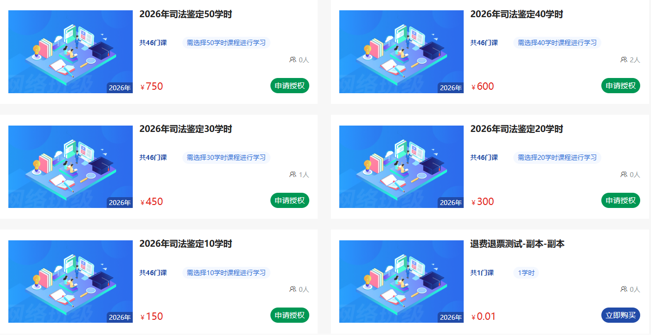 为贴合不同同仁的学时要求与学习节奏,平台设置多档灵活学时套餐,支持自主选学课程,兼顾学习的灵活性与针对性,满足司法鉴定从业人员继续教育的学时积累需求。